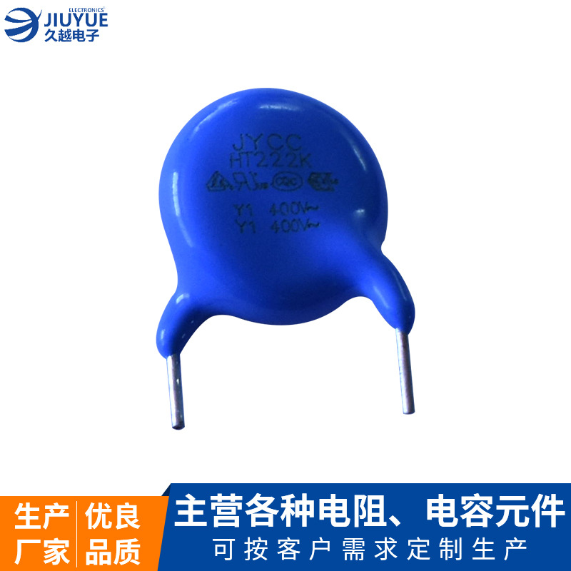 Y1系列安規陶瓷電容JYCC-Y1-400V/AC-222M藍色交流瓷片電容廠家